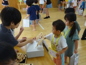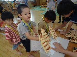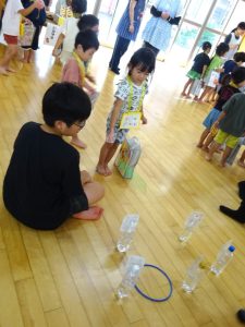 もも組さんが、落ち葉を使った秋の遊びで