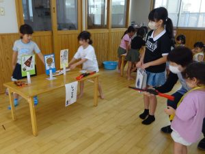 - 「赤い葉っぱはあるかな?」先生が尋ねると