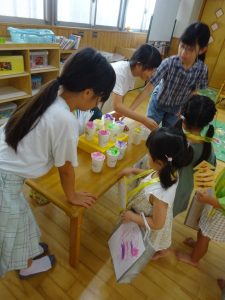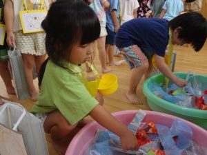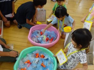 お庭を駆け回って探す子ども達から