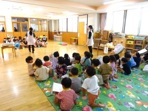 園庭の木々も色づき、風に乗って