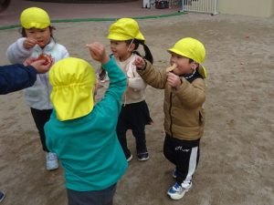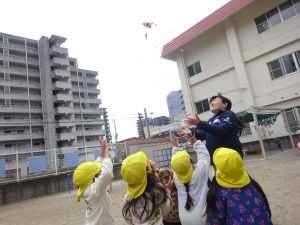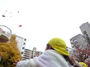 「そ~れっ!!」と投げると、赤・茶・黄色の