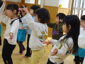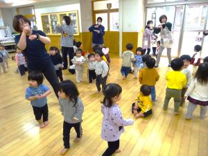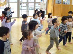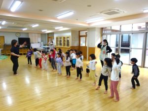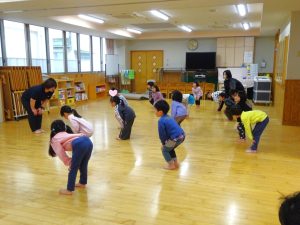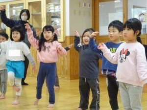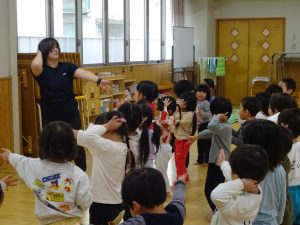先生の動きを見ながら、飛んだり跳ねたり